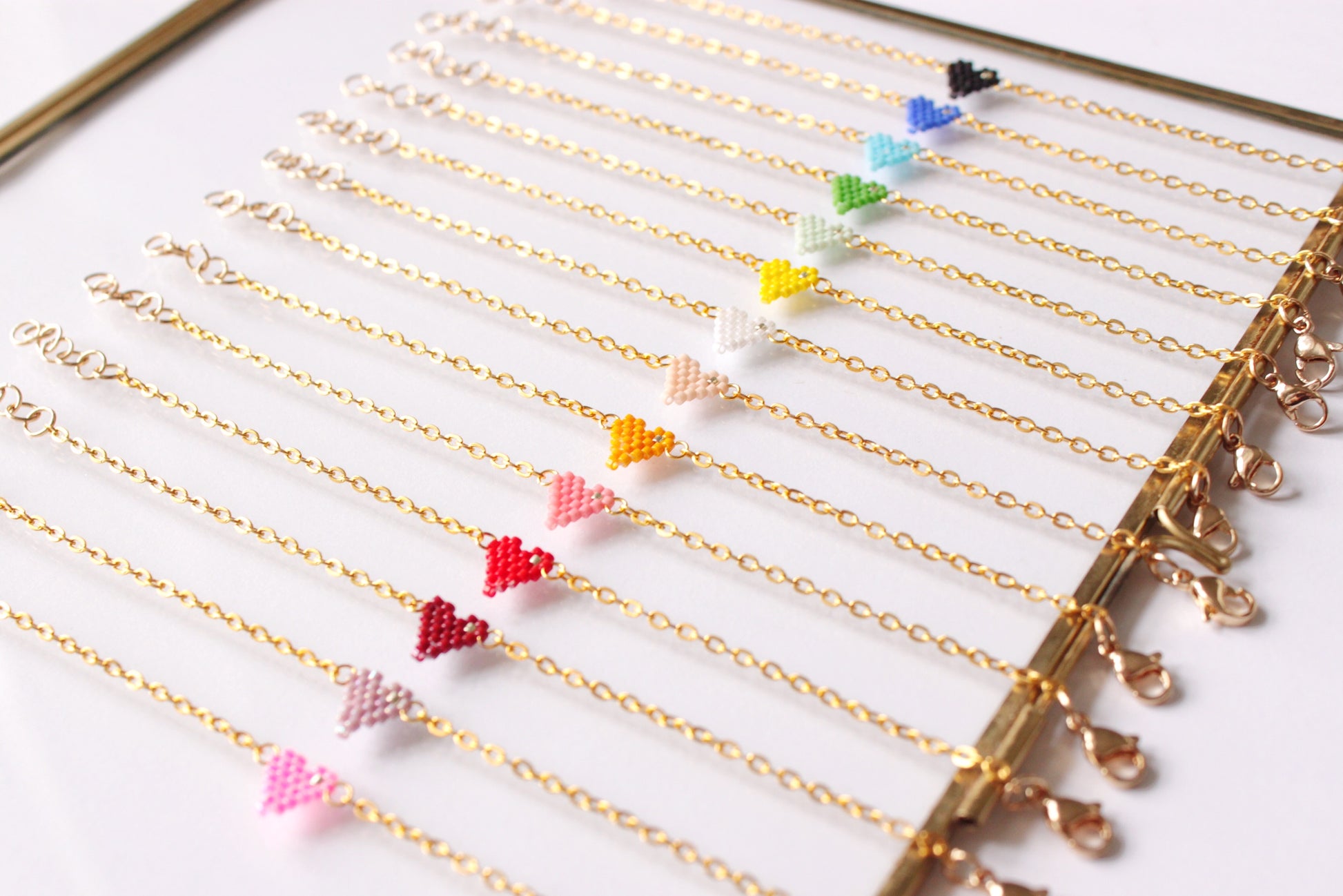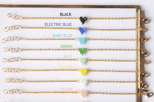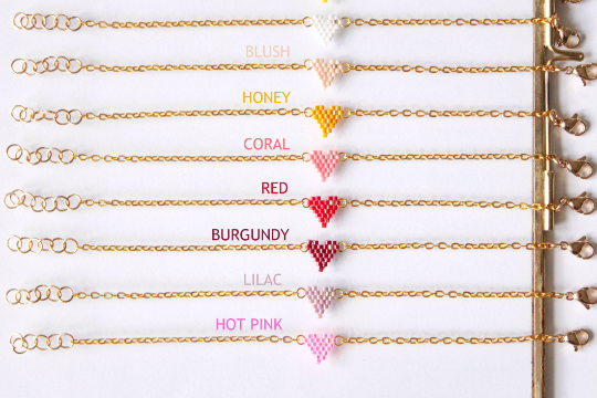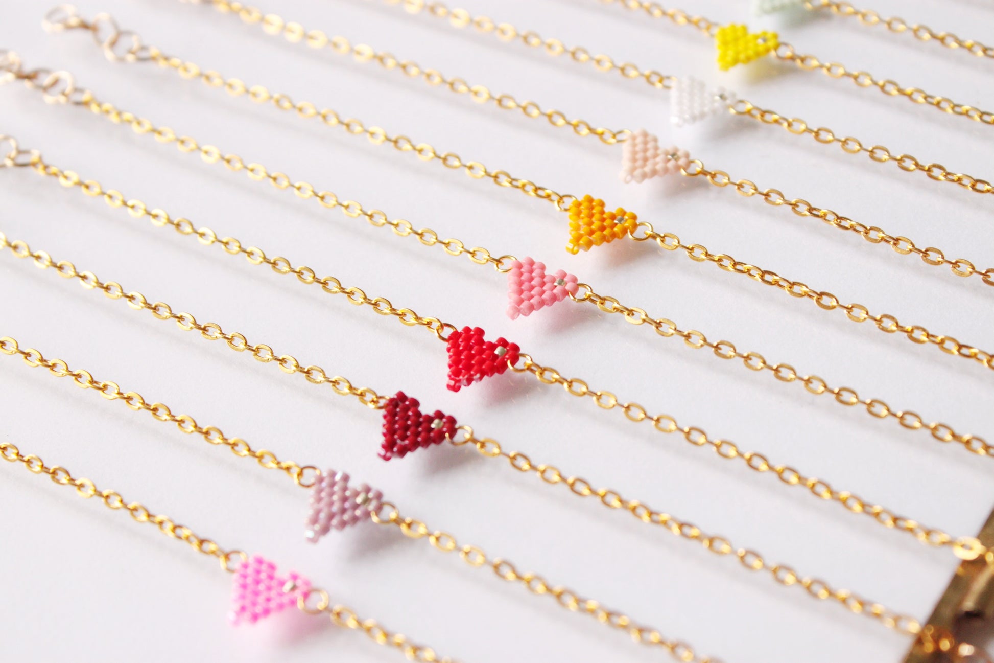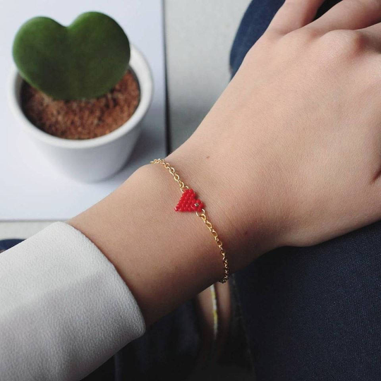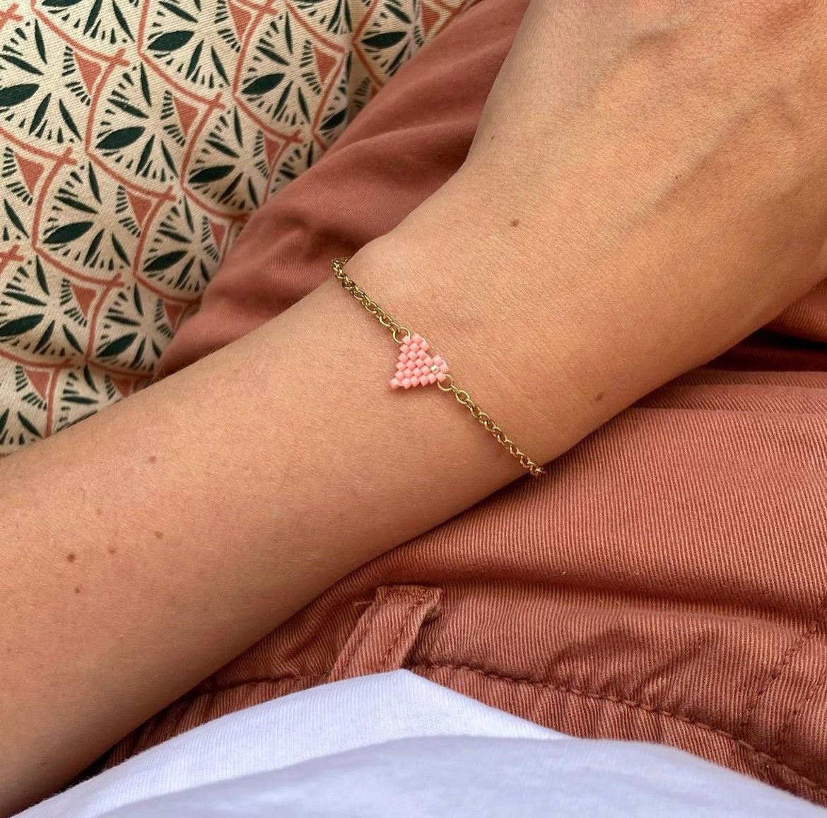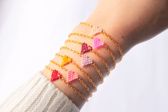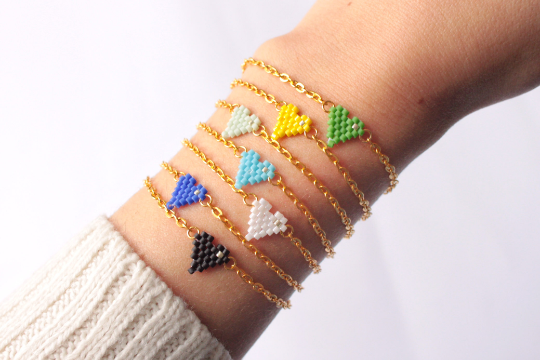 Braccialini con cuoricino centrale realizzato in tessitura di perline giapponesi Miyuki.