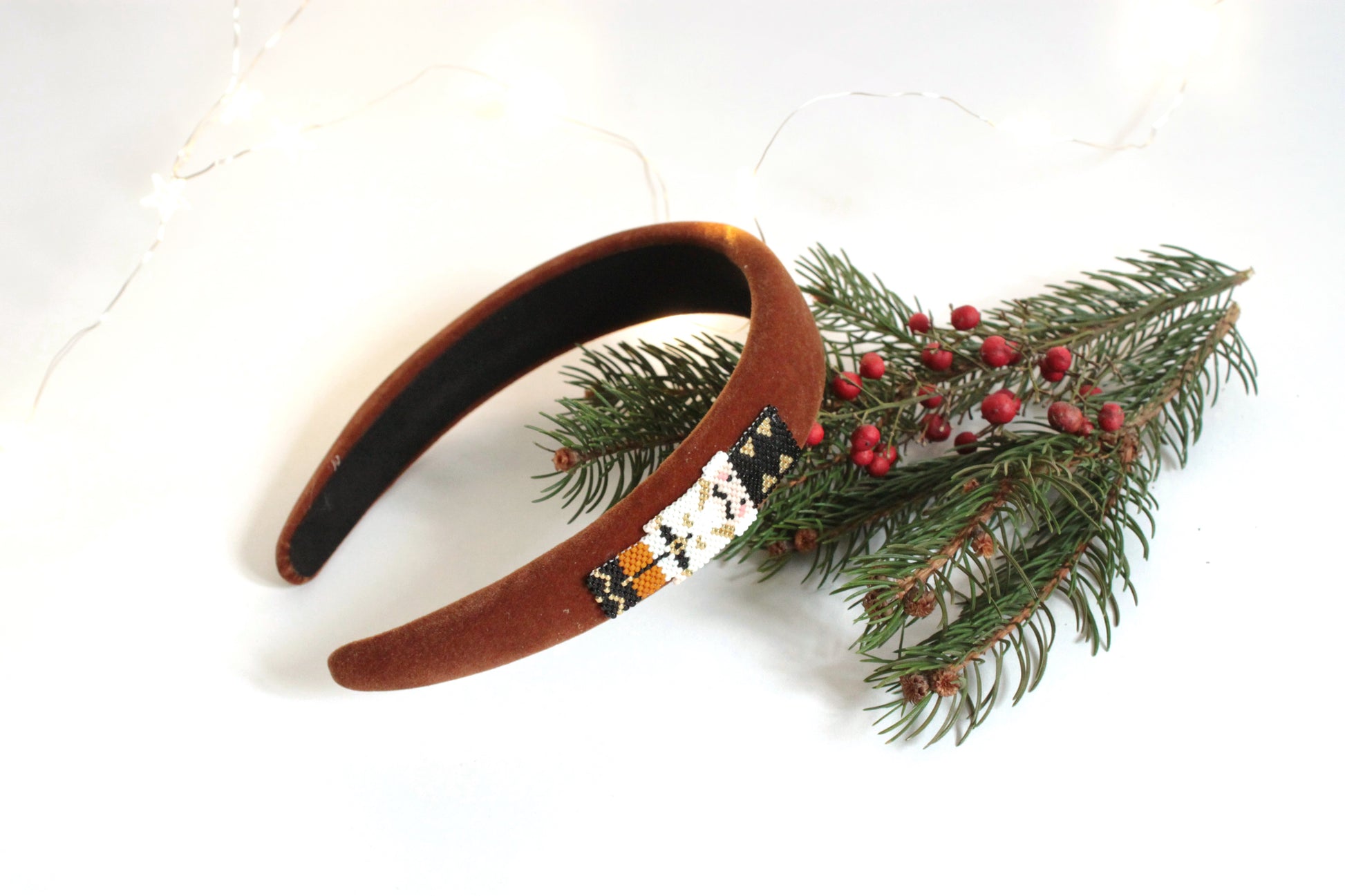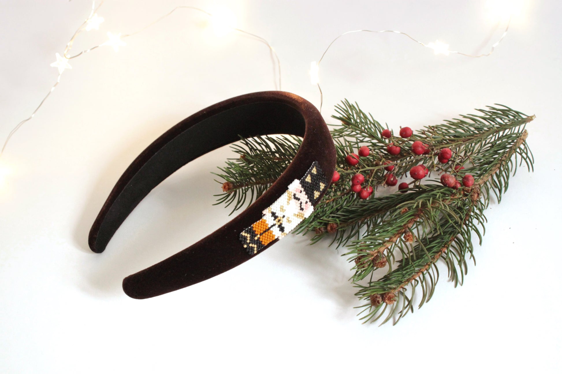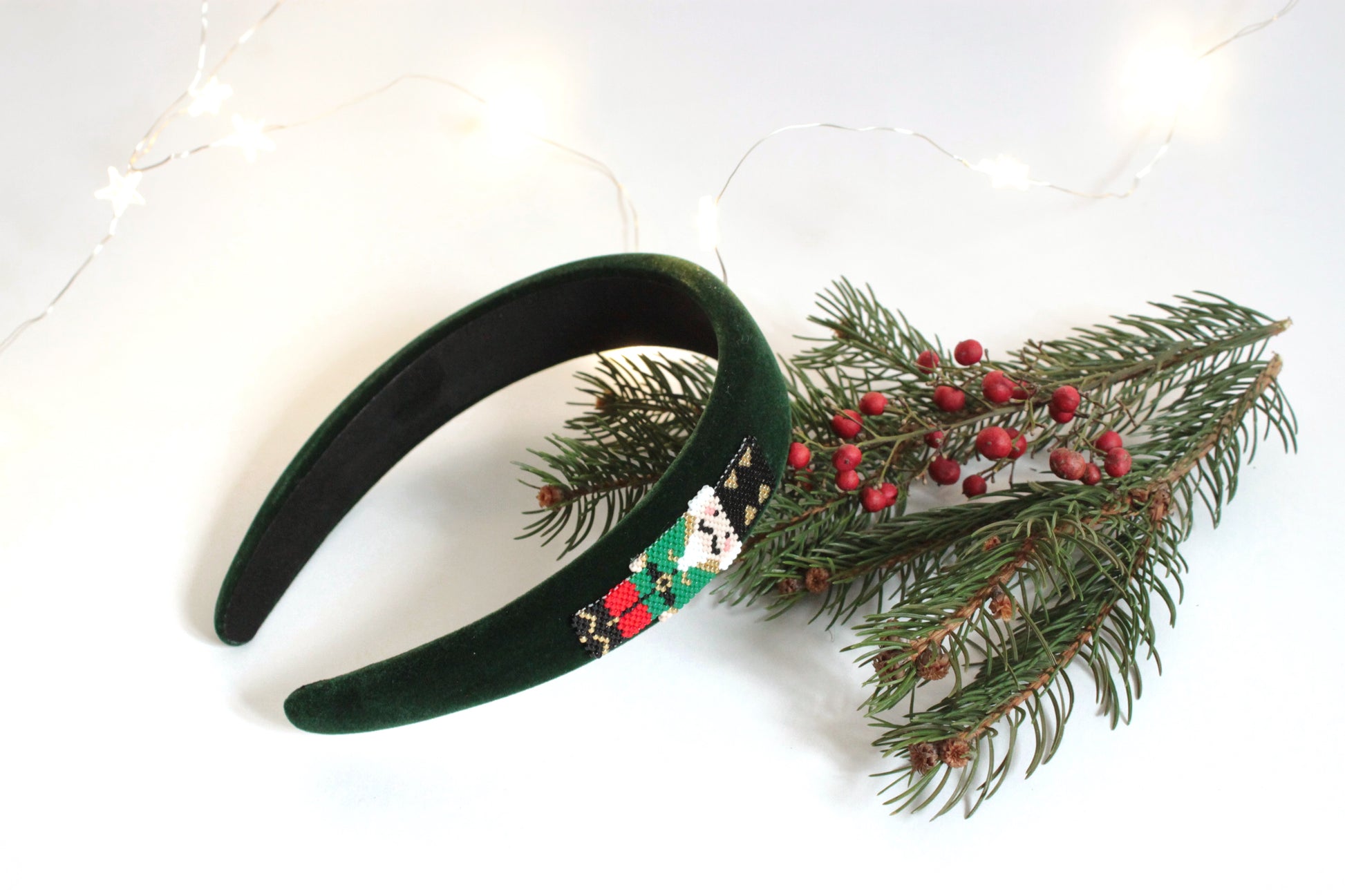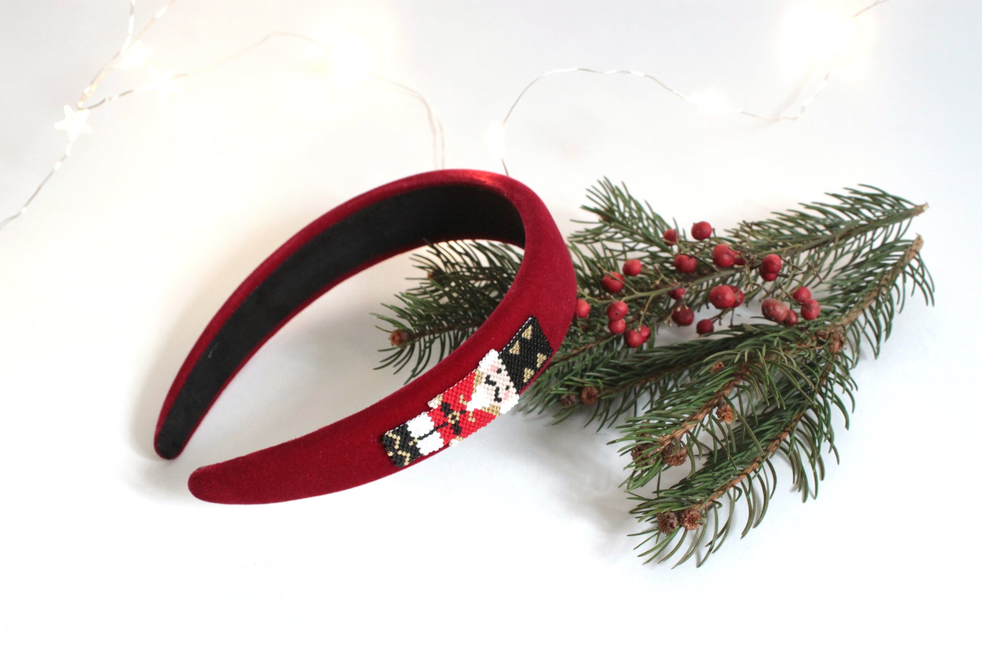 Cerchietti di velluto leggermente bombati con decorazione Schiaccianoci in tessitura di perline con dettagli oro. Morbidi ma sostenuti, sono perfetti per impreziosire il tuo look delle feste, taglia adatta per adulti e bambine.