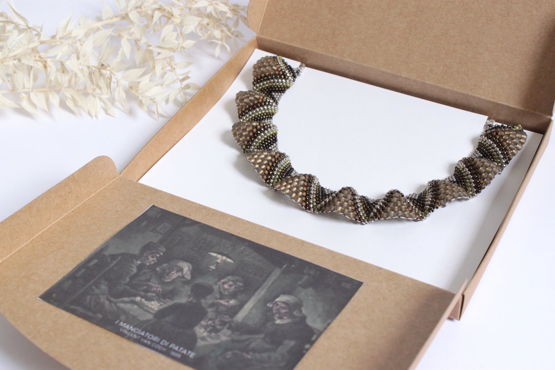 Collana Lenorarte ispirata a "I Mangiatori di Patate" dipinto di Vincent Van Gogh del 1888-1885.