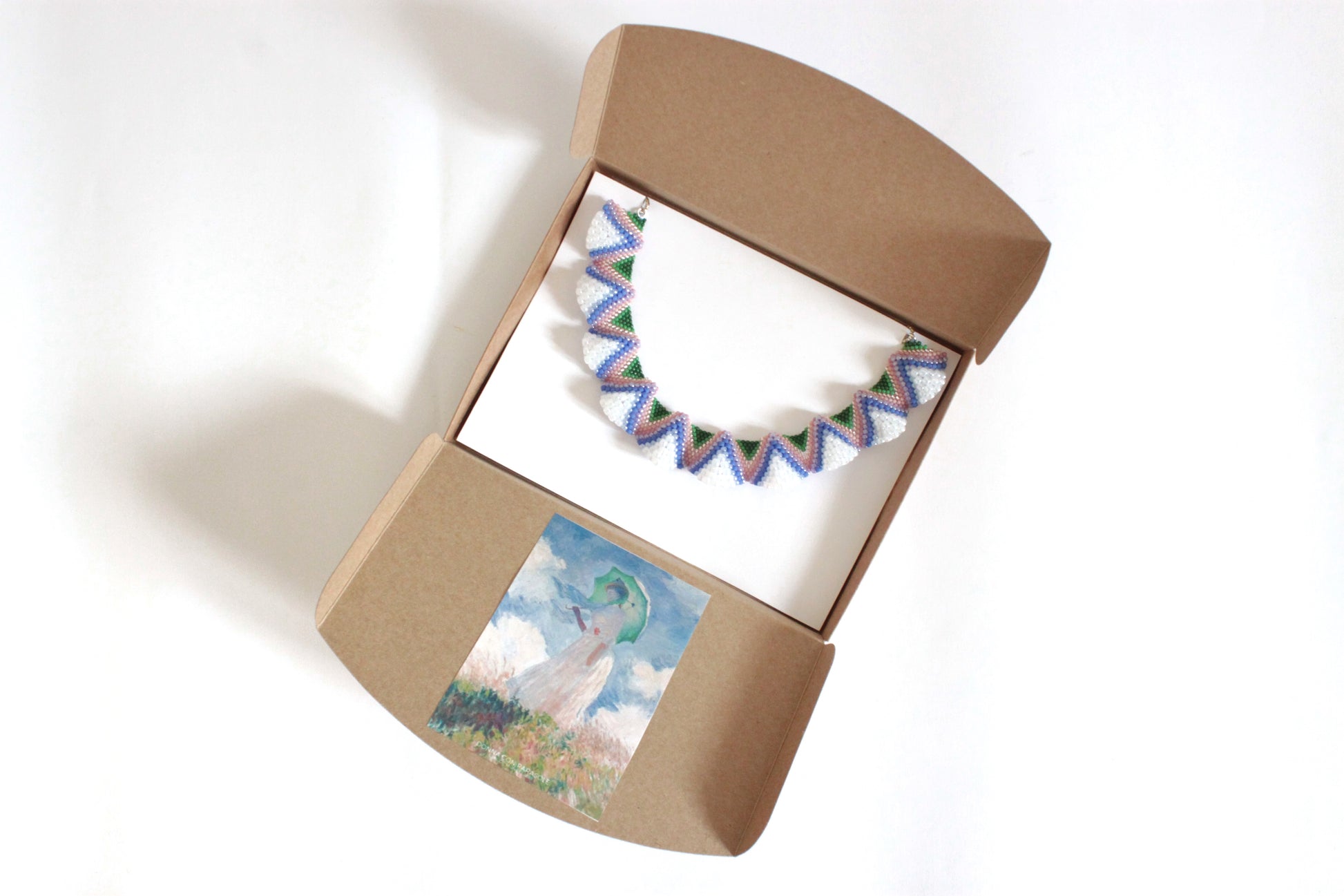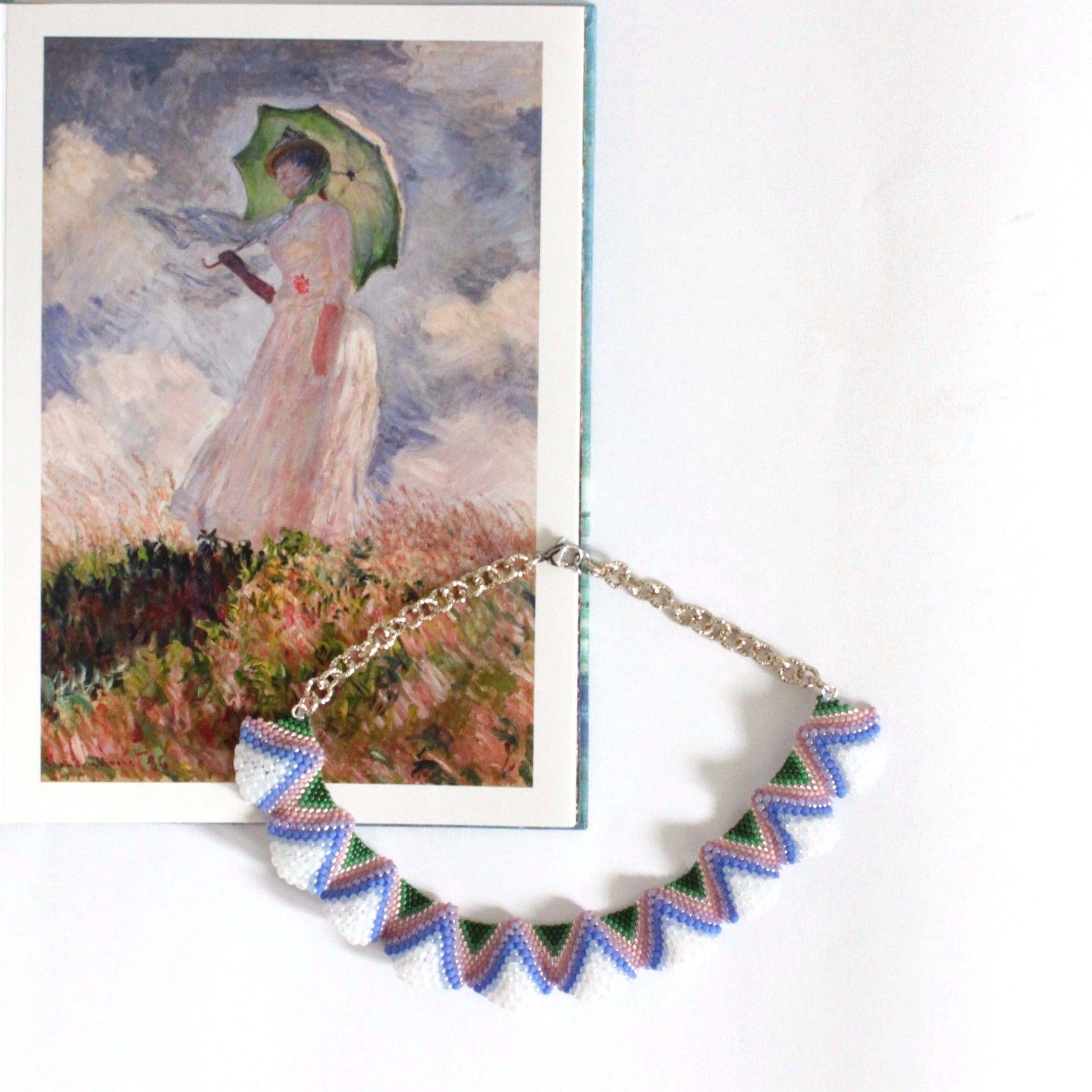 Collana Lenorarte ispirata a "Donna con Parasole" dipinto di Claude Monet del 1886.