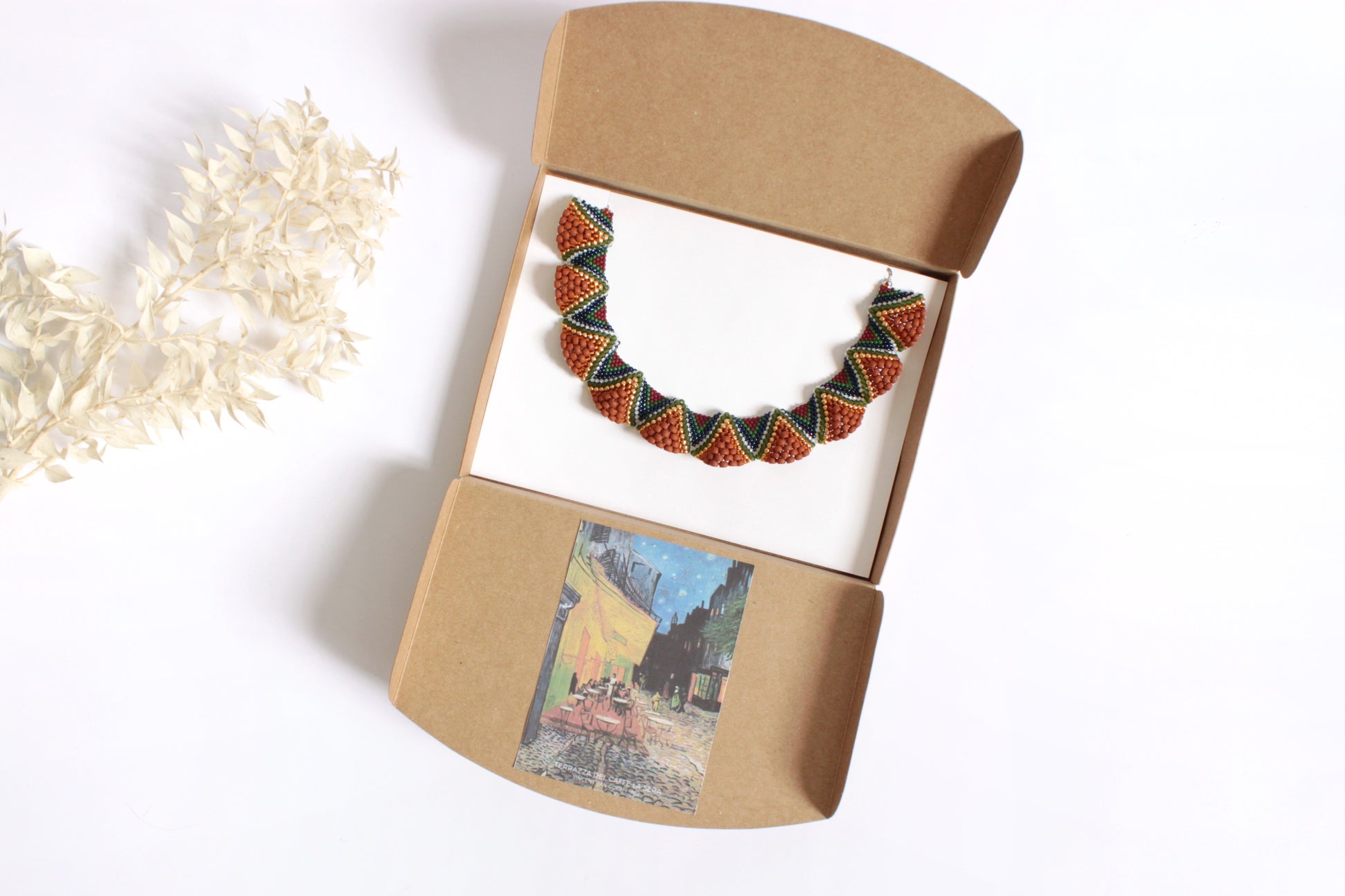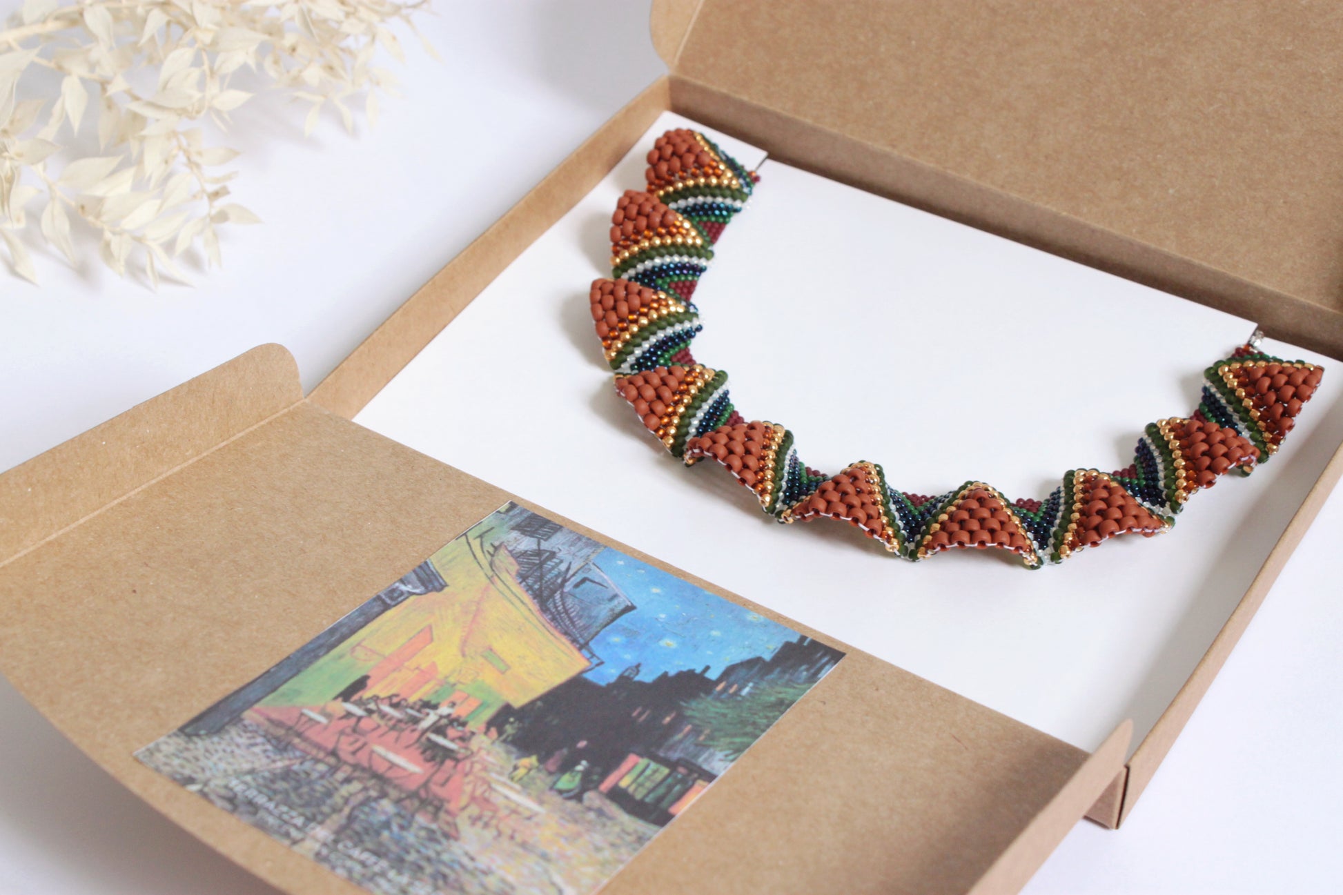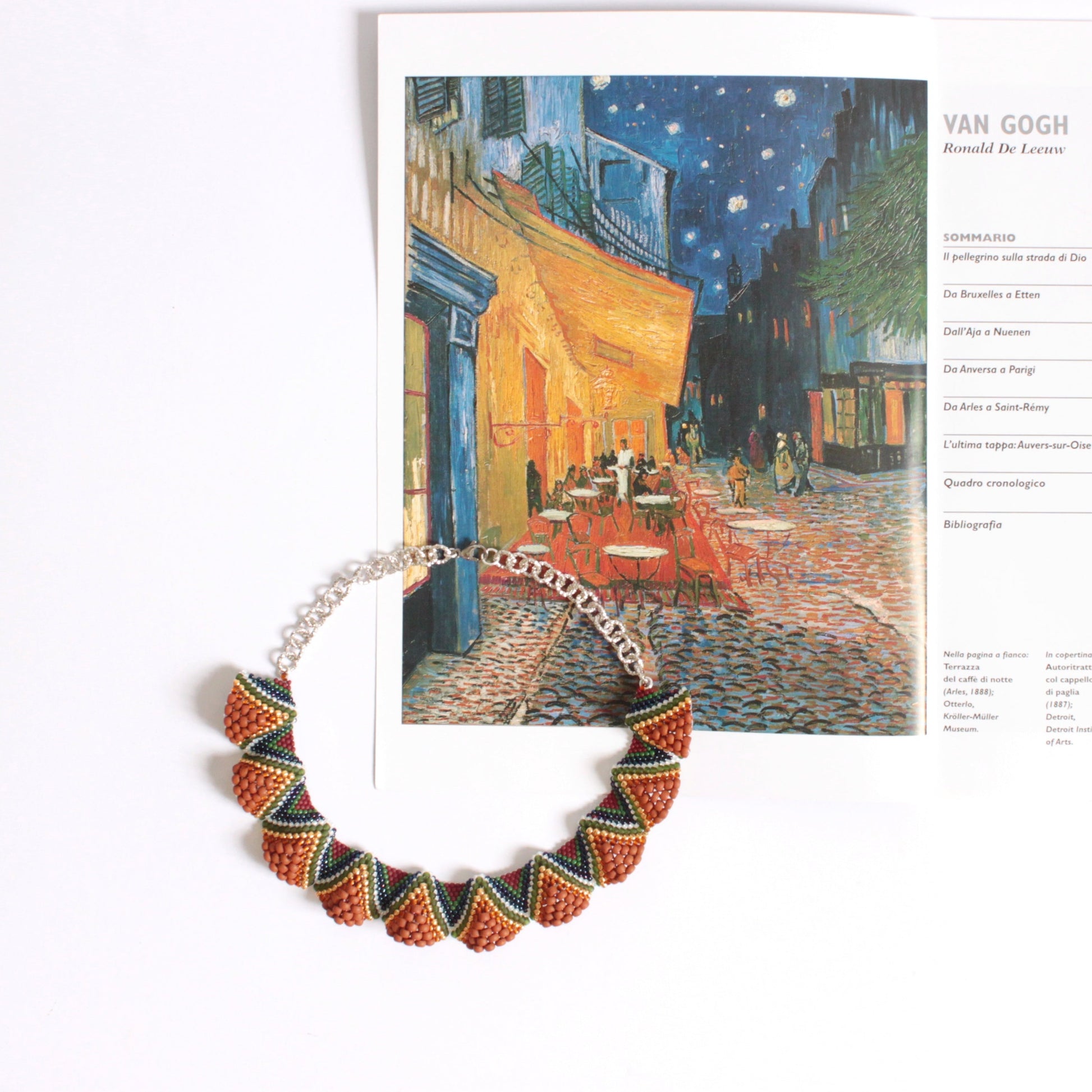 Collana Lenorarte ispirata a "Terrazza del Caffè la Sera" dipinto di Vincent Van Gogh del 1888.