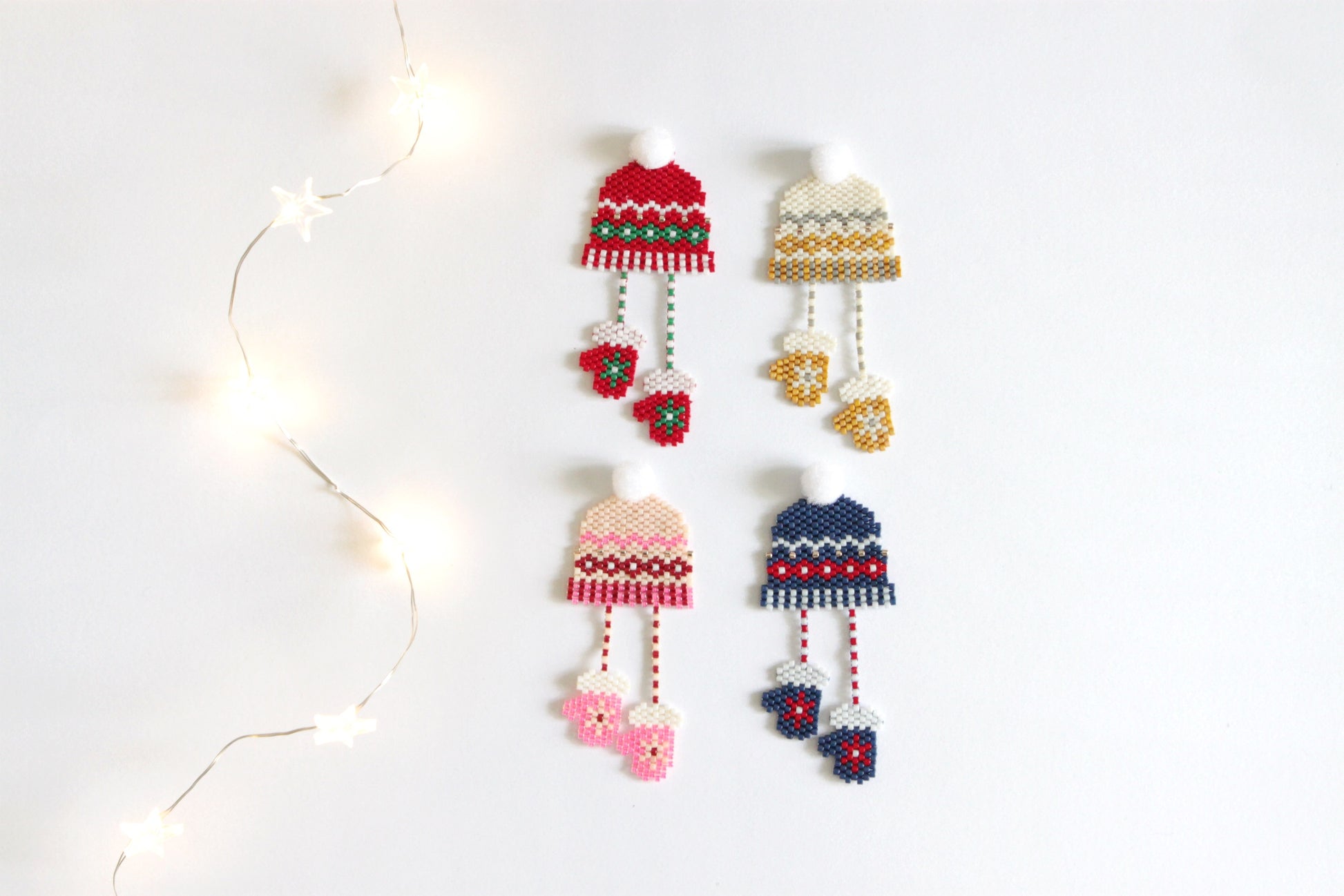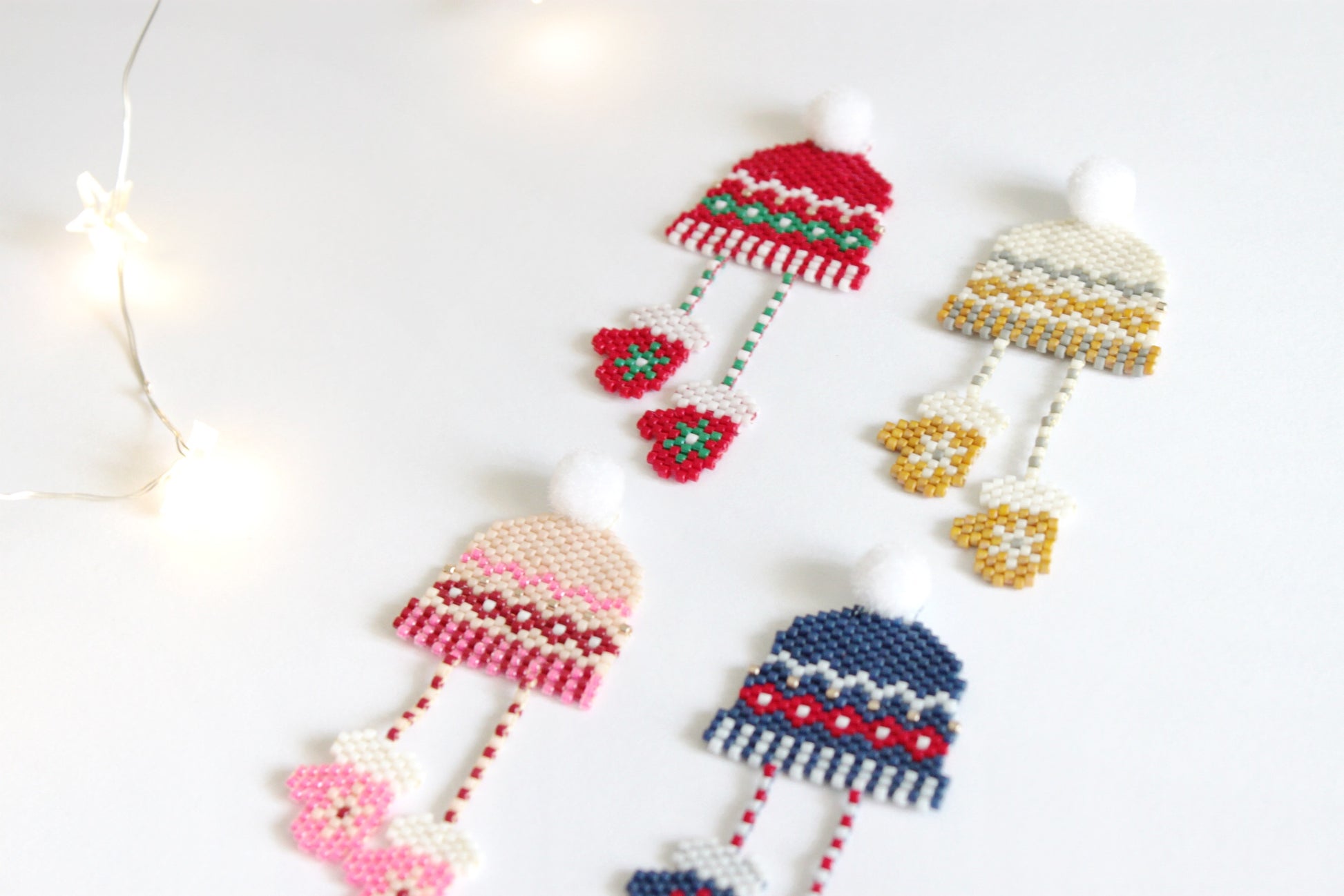 Decorazione per albero di Natale realizzata in tessitura di perline giapponesi rifinito con piccolo pom pom.