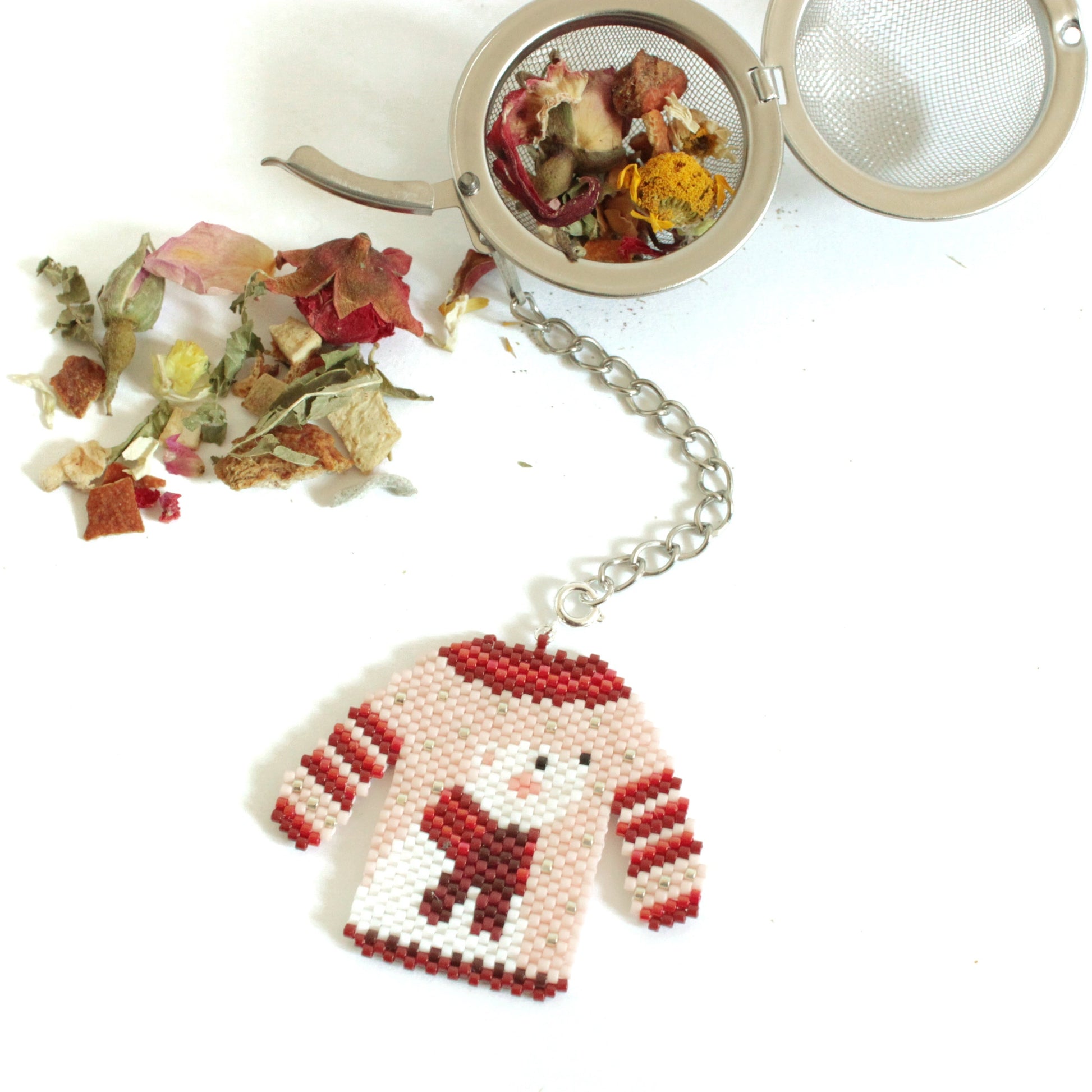 Filtro pallina in acciaio per tè e tisane sfuse, con decorazione maglioncino realizzato in tessitura di perline giapponesi.
