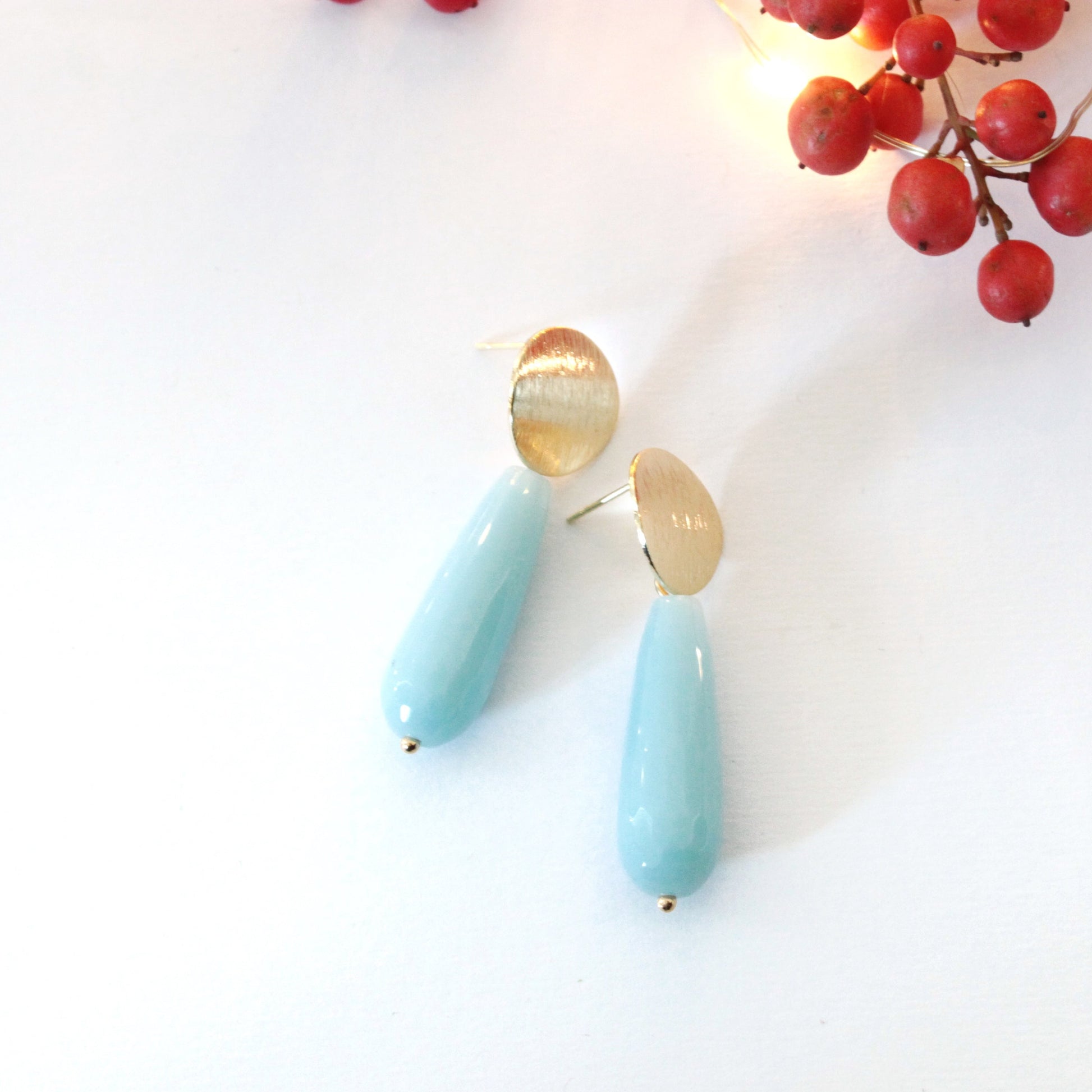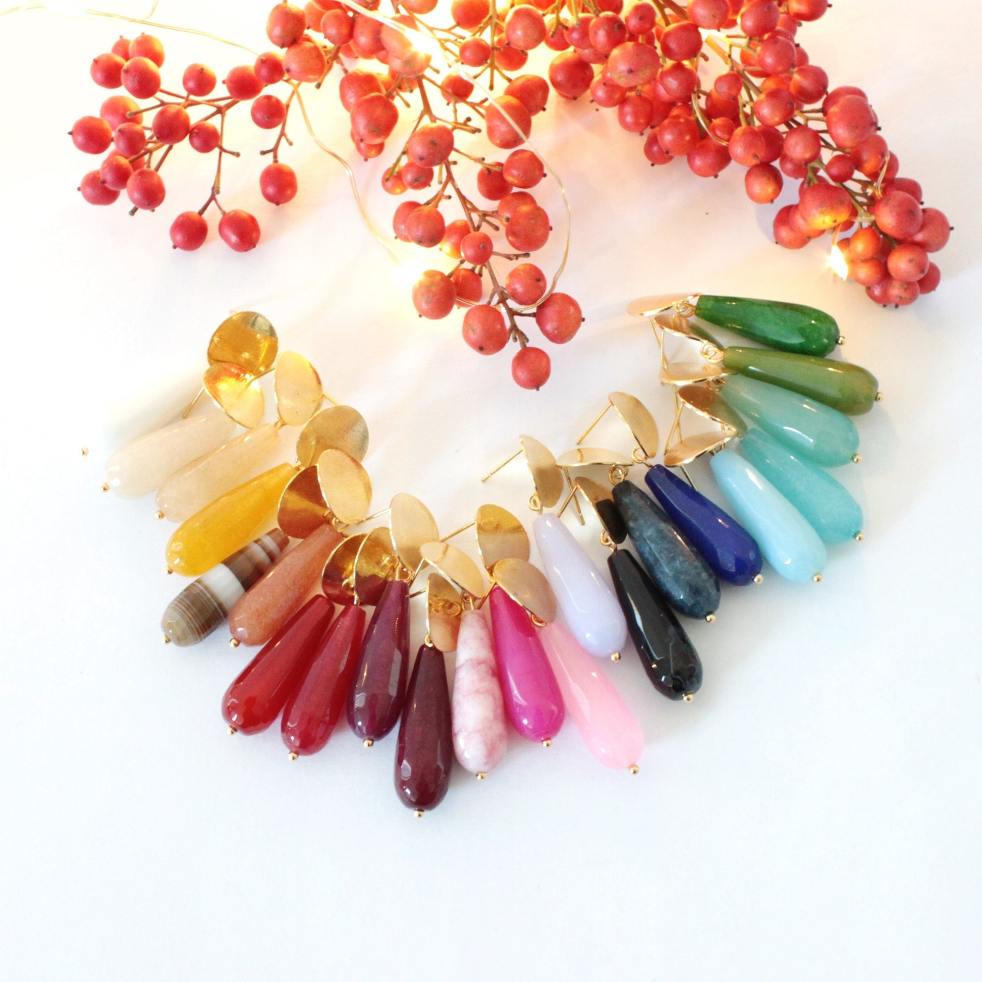 Orecchini realizzati con gocce di pietra dura provenienti da mercatini e fiere di settore, che rendono quindi questi orecchini pezzi unici e irripetibili.