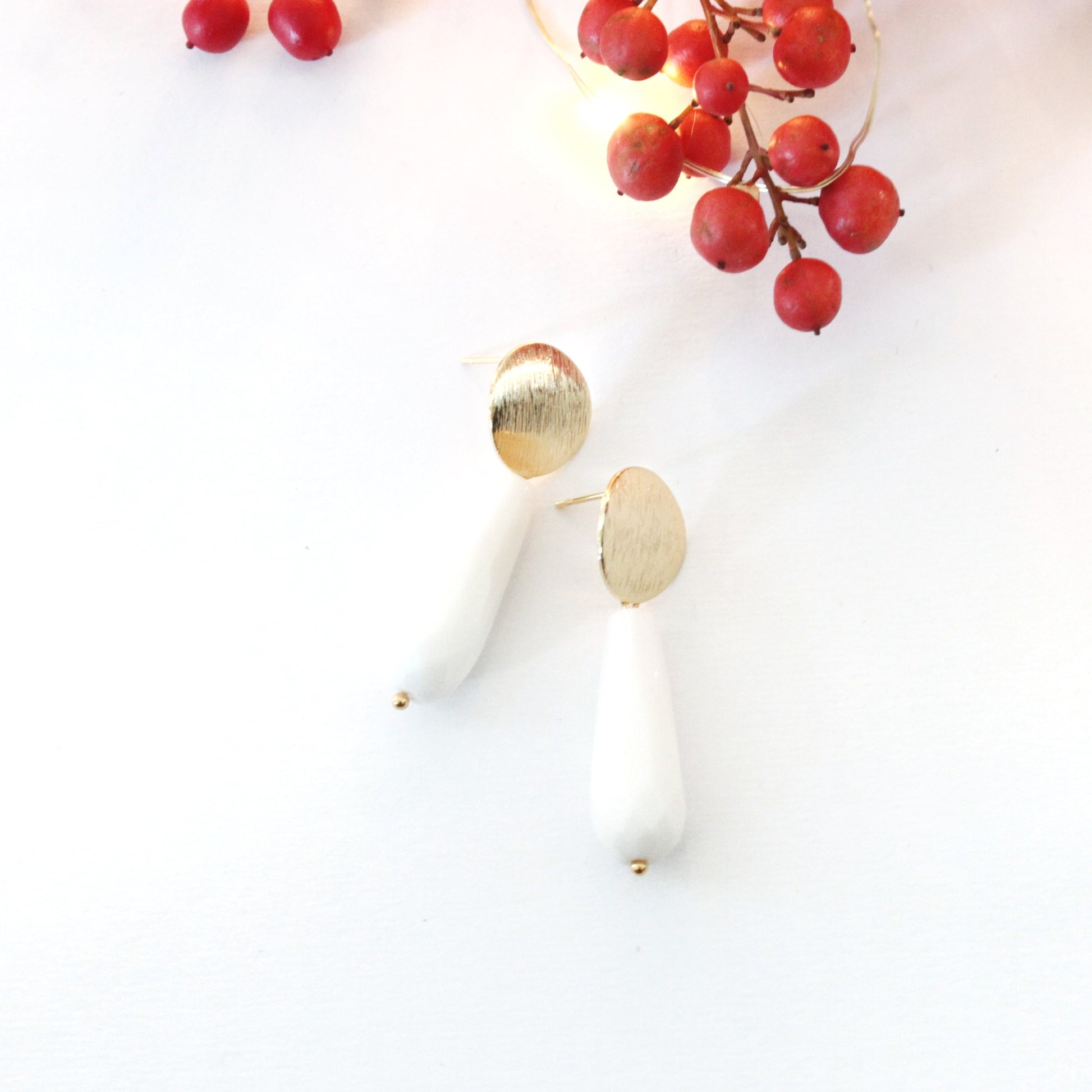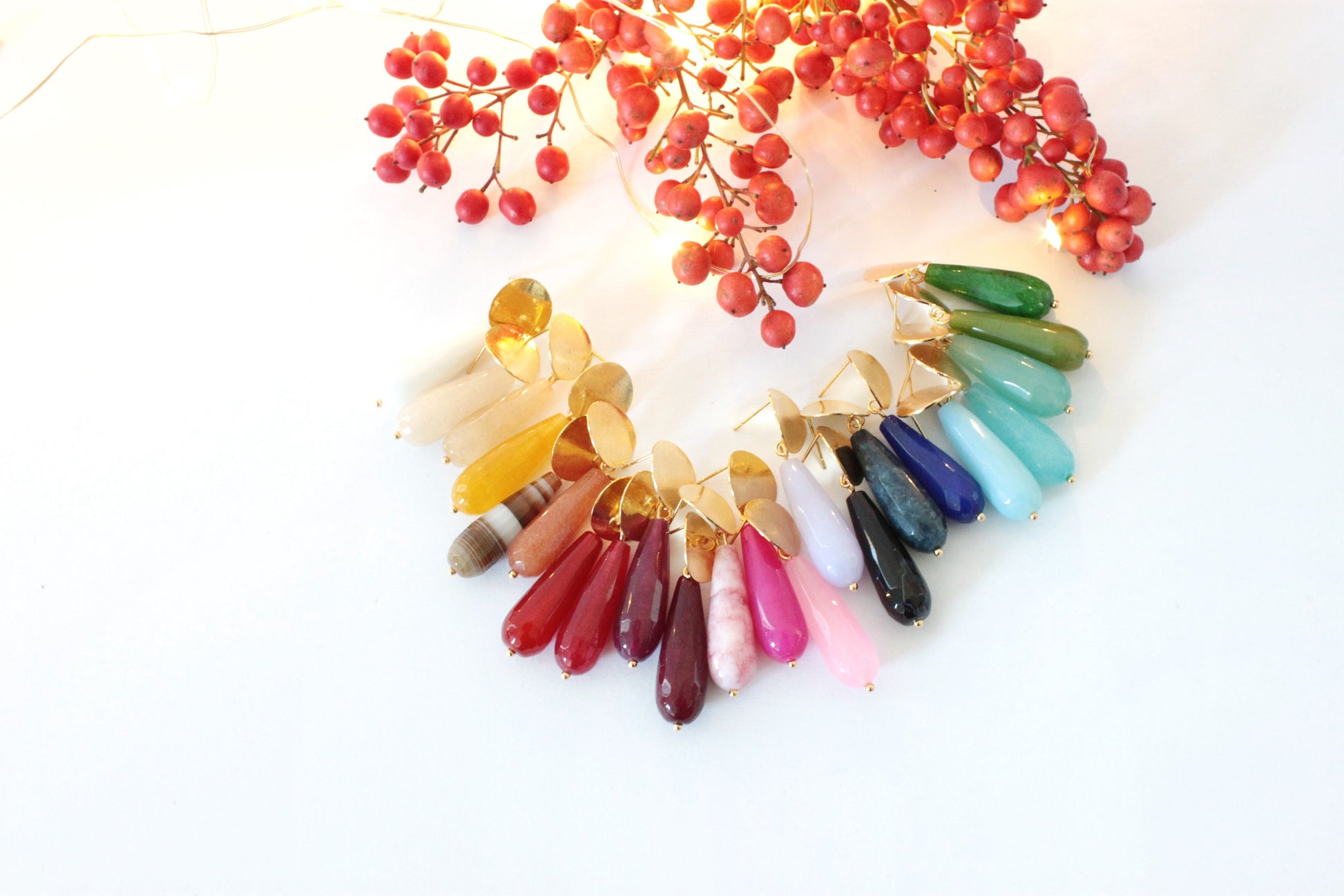 Orecchini realizzati con gocce di pietra dura provenienti da mercatini e fiere di settore, che rendono quindi questi orecchini pezzi unici e irripetibili.