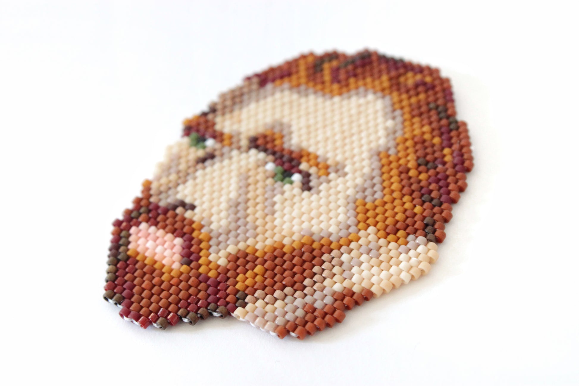 Ciondolo raffigurante l'artista Vincent Van Gogh, realizzato in tessitura di perline giapponesi delica Miyuki di 16 diverse sfumature.
