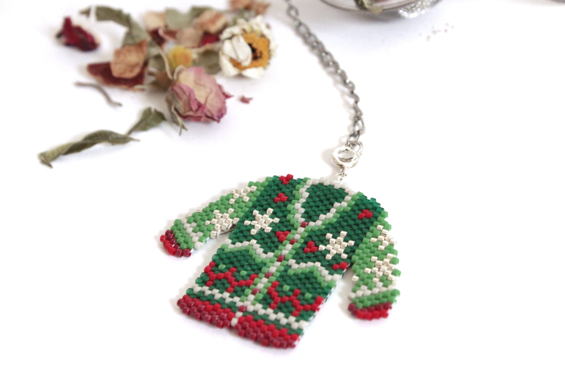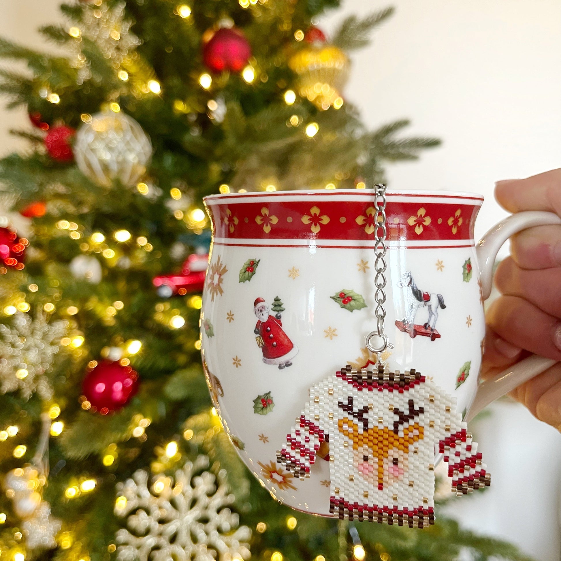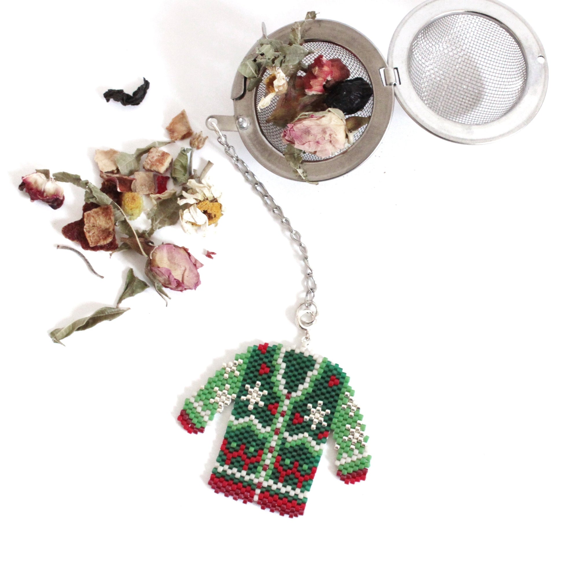 Filtro pallina in acciaio per tè e tisane sfuse, con decorazione maglioncino realizzato in tessitura di perline giapponesi.