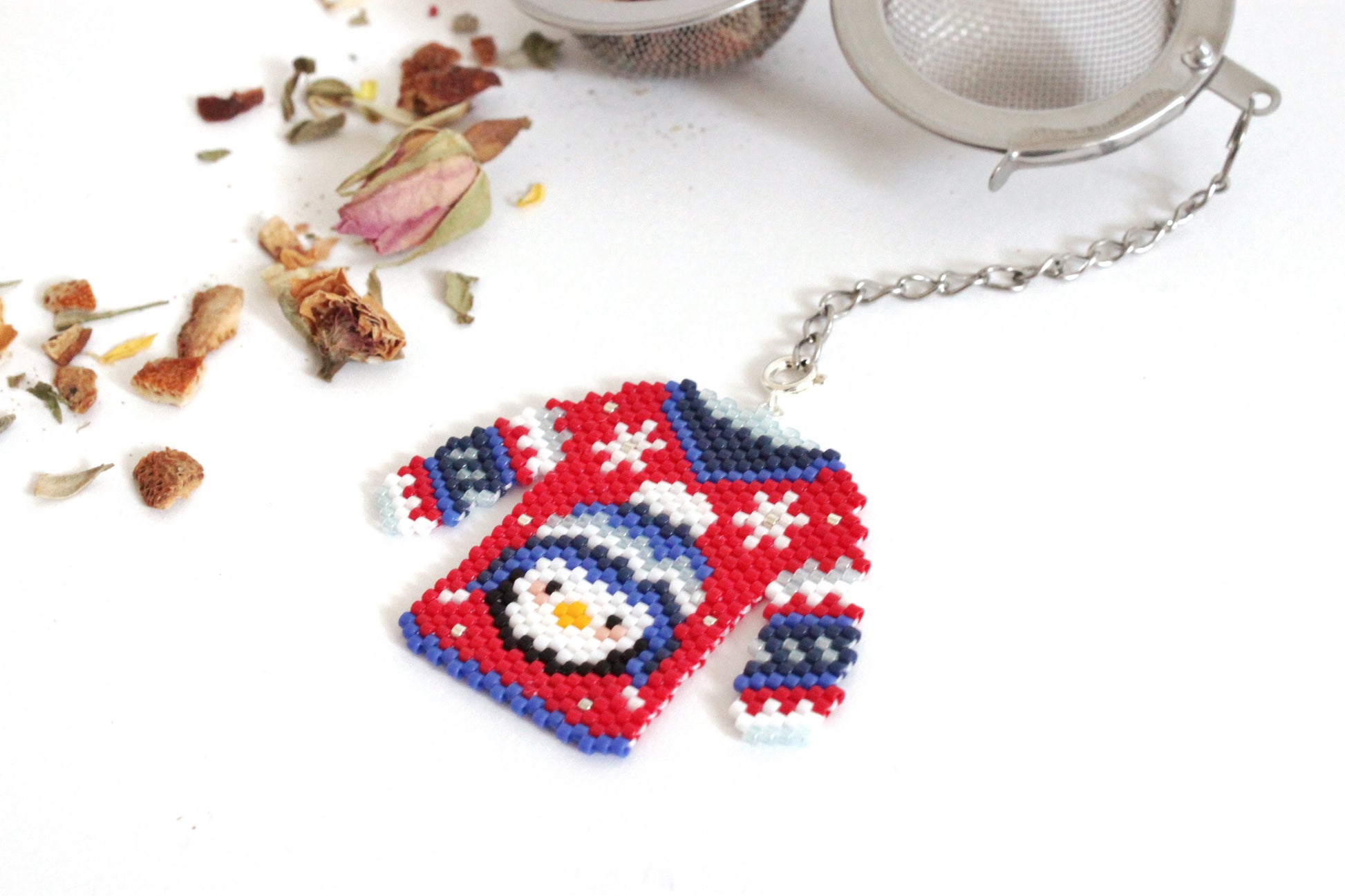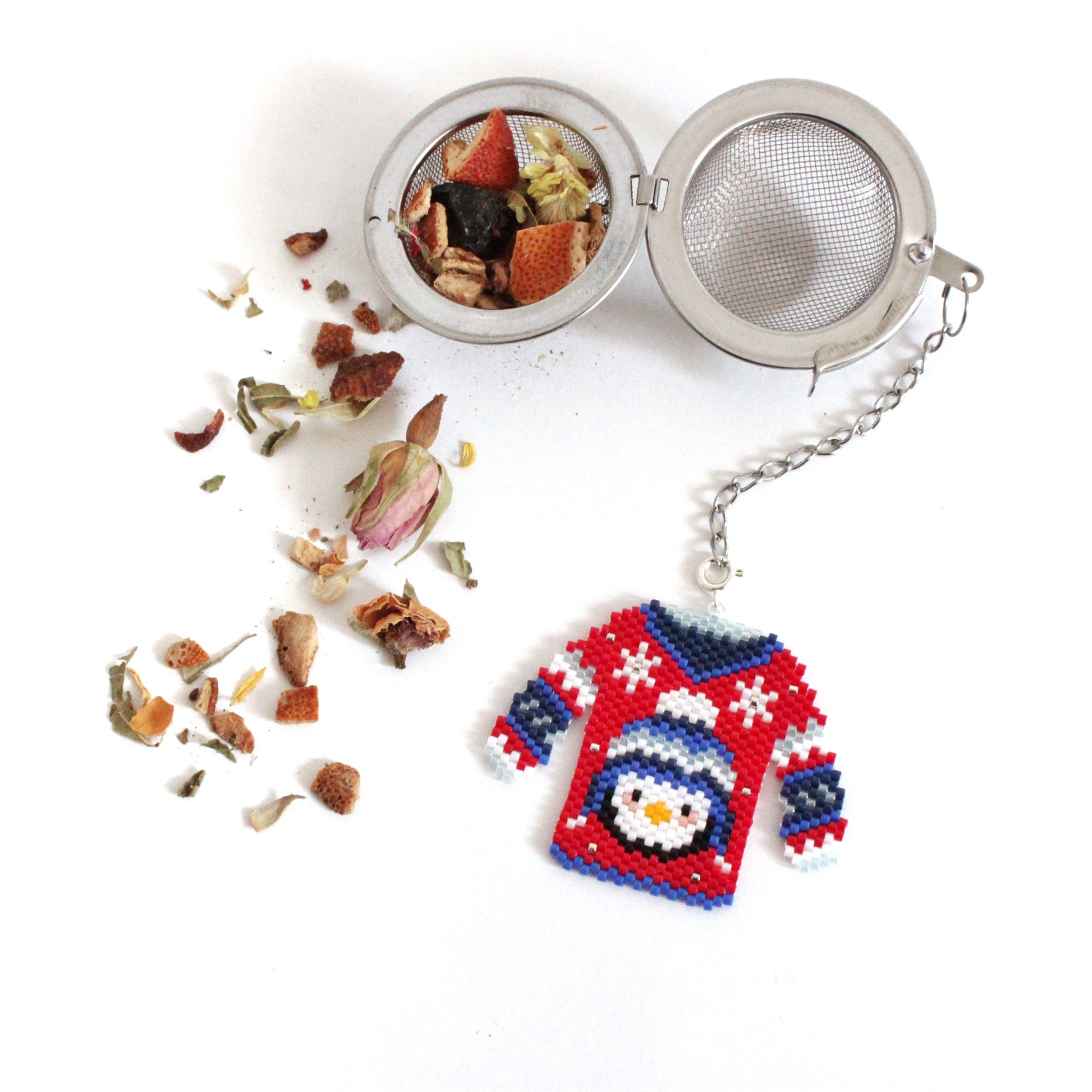 Filtro pallina in acciaio per tè e tisane sfuse, con decorazione maglioncino realizzato in tessitura di perline giapponesi.