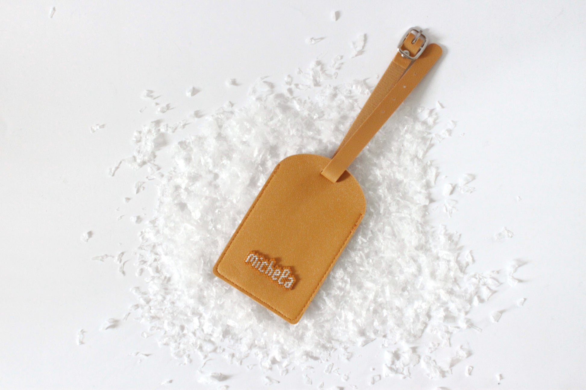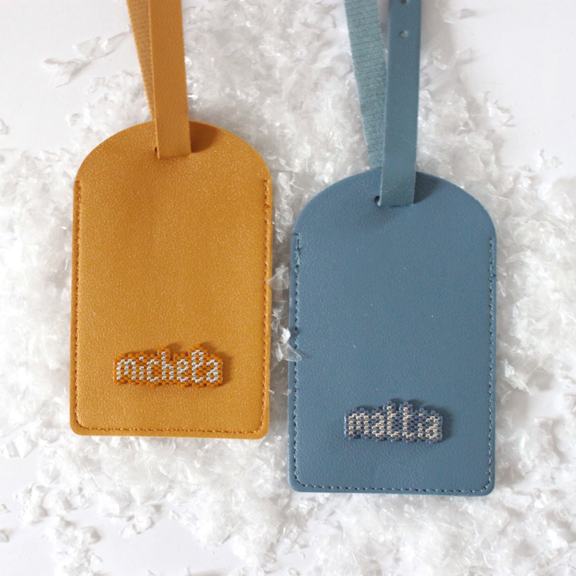 Tag valigia in finta pelle personalizzata con il proprio nome, iniziali o parola a piacere cuciti in tessitura di perline. (lasciami la tua preferenza nelle note dell'ordine!)